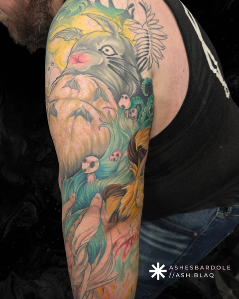 She specializes in fantasy and organic blackwork, but welcomes a wide range of custom ideas in color and contrast.